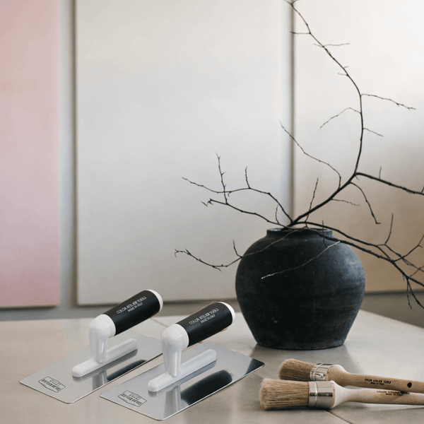 Color Atelier also offers brushes and trowels custom made in Italy for Color Atelier—ideal for both DIY and trade use. Our block brushes most closely resemble the brushes that have been used in Europe for centuries, specially designed for the application of lime paints. The collection is completed with meticulously handcrafted stainless steel and chrome trowels, trusted by professionals worldwide for their exceptional quality and performance.
